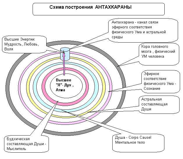 Так зарождается Мудрость. Постепенно Разум начинает брать контроль над повелениями чувств, склоняя Волю к принятию наилучших решений. Свобода выбора принятия решения остается за Разумом. Когда, при свободе выбора, все пути заблуждения пройдены, и человек убедился, что они приносят только страдания, остается только один путь правильный, к Истине. Старания Души человека достучаться, через покров физической, грубой материи к Разуму человека, называются Совестью. Чем более тонкая структура материи человека, тем он более духовно развит и влияния Души более явно выражены, человек более совестлив и нравственен. Очень важна в эволюции нравственных качеств привязанность людей друг к другу и Любовь, и наоборот, холодный, добровольно уединившийся человек уходит от нее, от Любви. Низший Разум, путем рассуждений поднимается до высоты абстрактной идеи в ментальную среду и там соприкасается, пока еще слегка, со своим внутренним Настройщиком Мышления. Когда же способность абстрактного мышления разовьется сильно, Разум человека и его Мыслитель соединяются воедино, между ними выстраивается постоянный канал связи, который называется Антахкарана, и человек подходит к ясному осознанию всего Бытия и внутренних причин внешнего мира.
