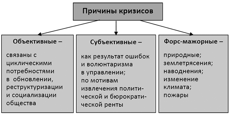 На рис. 1.1 представлены три группы причин кризисов.