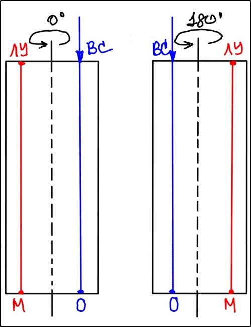Рисунок № 5. Внешний (синий) и внутренний (внутренний) свет в неподвижном канале, если бы Земля не двигалась по орбите.