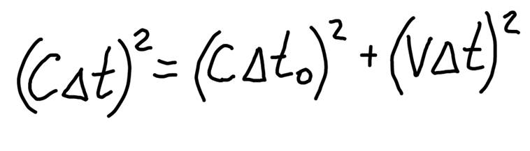 Так как световой импульс проходит в неподвижной системе отсчёта вдоль гипотенузы треугольника с катетами L=CΔt0 и VΔt.