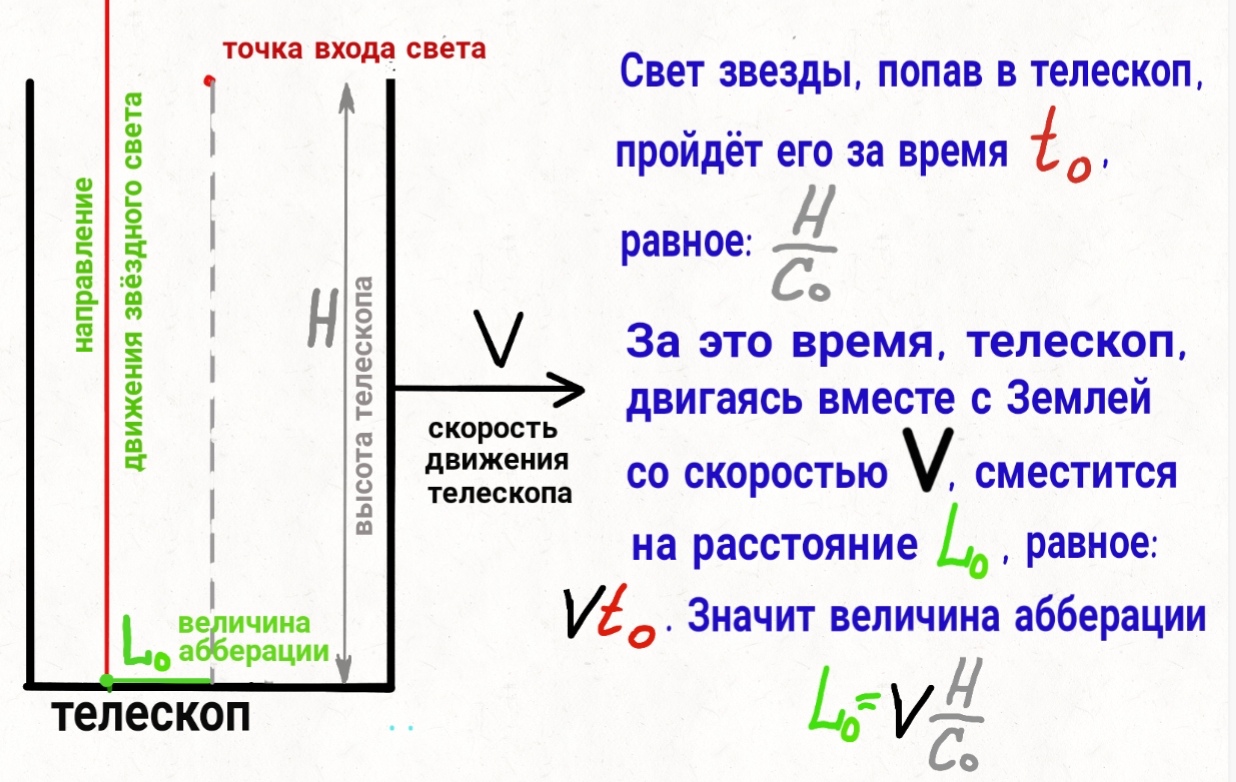 Рисунок № 14. Схема возникновения звездной аберрации.