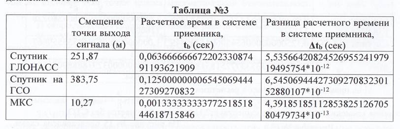 В таблицах № 1 и № 2 представлены усредненные данные для спутника ГЛОНАСС, спутника на геостационарной орбите и международной космической станции, скорость света принята 300000 км/с (для наглядности рассматривается ситуация, когда спутник и приемник находятся на радиусе орбиты, при этом приемник – на поверхности Земли):