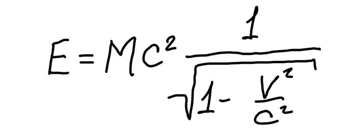 где Mо– масса покоя частицы. При движении энергия понятное дело увеличивается. Так как скорость света постоянна, единственный выход – увеличение энергии происходит из-за увеличении массы движущейся со скоростью V частицы до M. И массу покоя Mо при этом логично связывают с массой М соотношением: