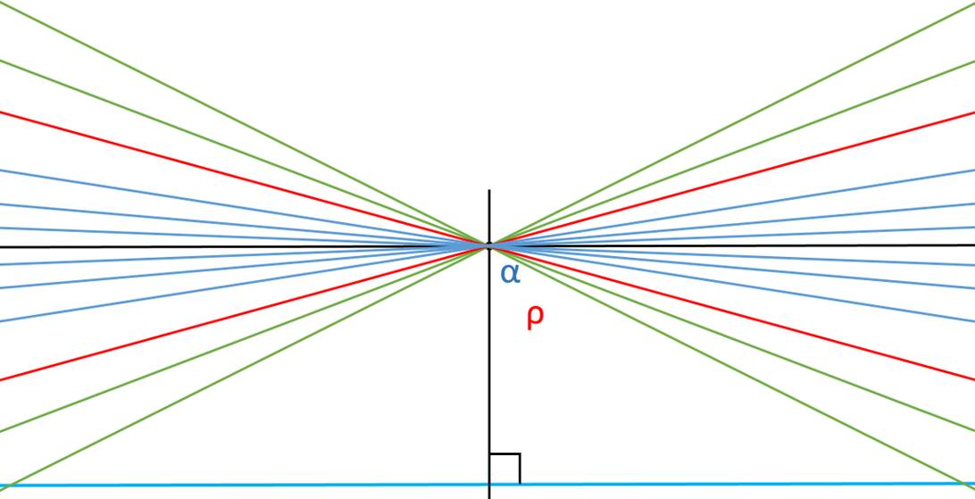 Если П(р) меньше прямого угла, то по другую сторону от перпендикуляра, под тем же углом П(р), будет проходить еще одна линия параллель, таким образом, мы должны отличать еще сторону параллельности.»