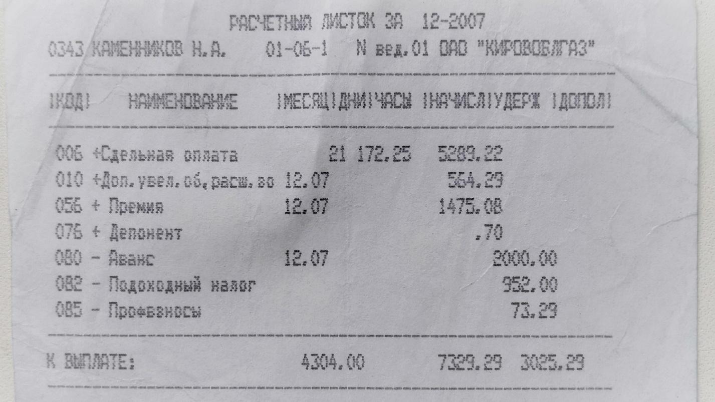 Расчетный листок слесаря 2 разряда в ОАО «Кировоблгаз»