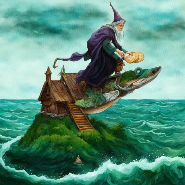 Я ехал верхом на рыбеПо темно-зеленому морюИ падали в море глыбы,С волнами огромным споря.Вороны катили коляскуНа скалах среди океана.В коляске дремала сказка,Напоена звёздами пьяна.Стояла седая избушкаИ лестница падала в небо.Сидела на крыше старушка,Жевала краюху хлеба.Над морем кружилася буря,А рыба моя плавникамиНатужно гребла, бельма жмуряИ зло шевелила губами.Звенело над нами пространство,Вдали щерились тёмные скалыИ тёмная хмарь декаданстваВино наливала в бокалы.Я ехал сквозь море на рыбе,Я двигался вровень с судьбоюИ падали в волны глыбы,Что прежде были Луною.