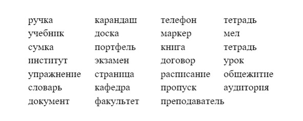 Мы… новые слова. Я… русский язык. Они… диалог. Ты… грамматику. Вы… текст.