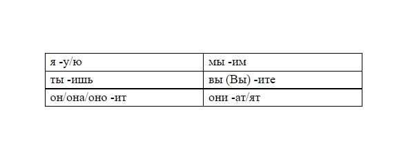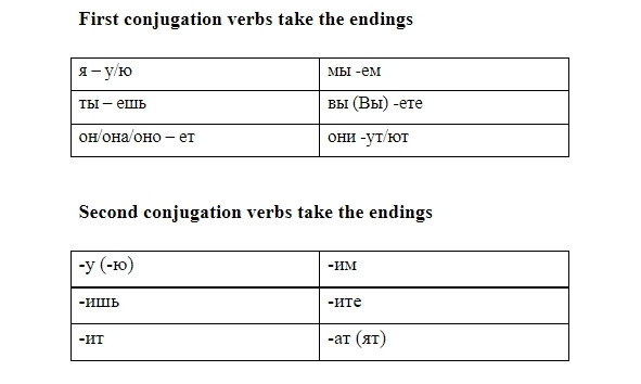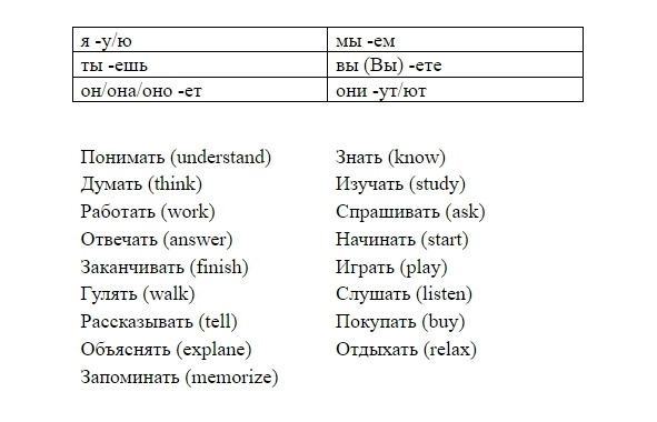 This is a general rule. There are exceptions and special cases that you must just remember. Let’s start with the first group of verbs It is important to mention is that after 8 letters (к, г, ш, ж, щ, ч, х, ц) we don’t write the endings: -ю, -ют. We use the endings -у, -ут instead.