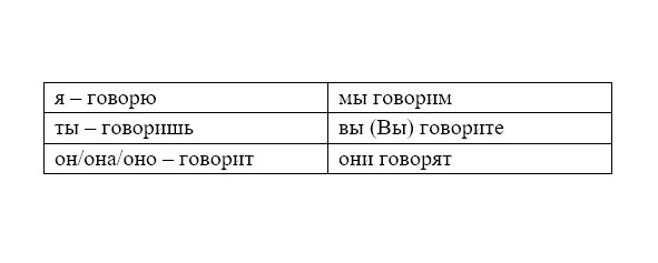 You can see. To conjugate a verb, you need to replace the ending ть (ти, чь) with the others. There are 6 endings in the present tense. There are two groups of conjugations of verbs: