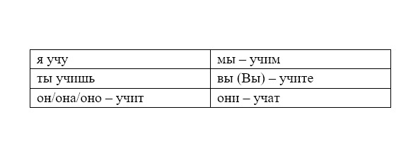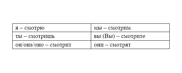 Second conjugation – verbs ending with еть, ить (смотреть, учить)