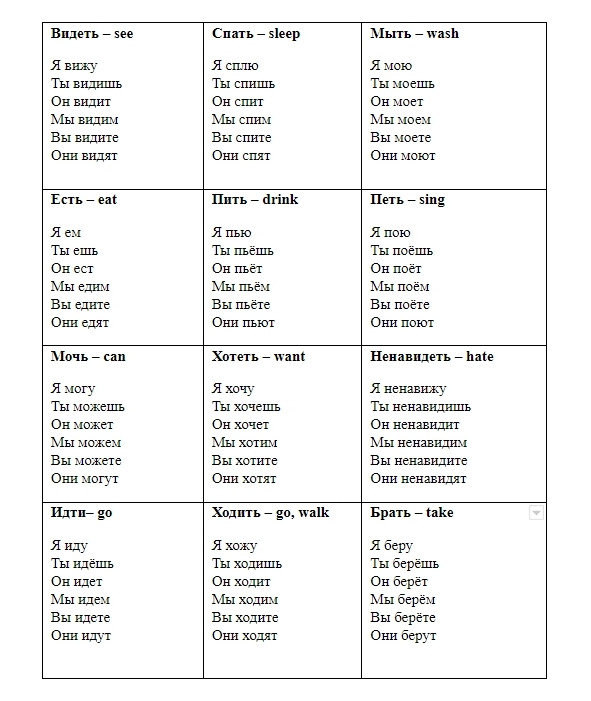 Урок 4. Глаголы несовершенного вида настоящего времени. Особые случаи глаголов