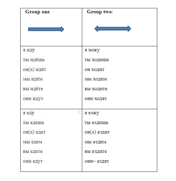 Group one: идти, ехать