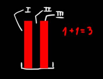 Сколько линий на рисунке? Видна первая линия, вторая, но есть еще и темная линия между ними. Видишь? 1 + 1 = 3.