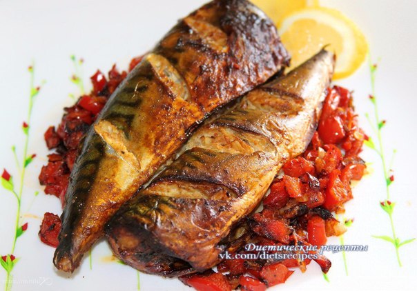 Запекается скумбрия с овощами 20-30 минут при 180-200 градусах. Подавайте ее вместе с овощами.