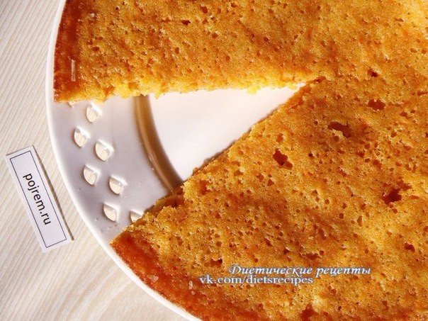 Желтки смешать с сухими ингредиентами, а белки взбить отдельно. Ввести в массу, затем добавить немного воды, но так, чтобы консистенция была густая. Выпекаем коржик 10-12 минут.