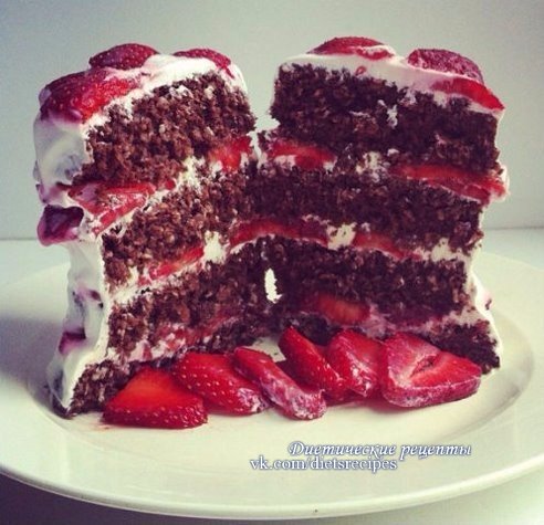 Перед выпеканием еще раз помешать и поставить чашку на 3.5 минуты в микроволновку. Достать, немного остудить и разрезать на 4 коржика, каждый пропитать соком (можно обильно) и начать складывать тортик: коржик намазать йогуртом с добавлением стевии, положить на него ягоды, сверху следующий коржик и тд. Стекающим йогуртом обмазывать бортики. Поставить на ночь в холодильник.