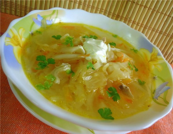 Рецепт на 10 порций, на 100г. супа – около 30ккал.