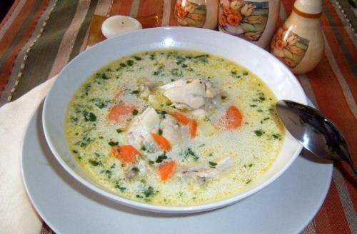 8. Вылить молочную смесь в суп и варить еще 15 минут, чтобы суп немного загустел.