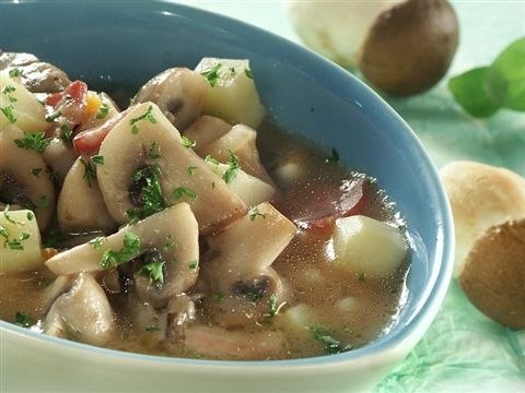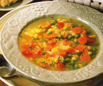 2. Крахмал растворить в двух столовых ложках холодной воды и добавить к бульону, постоянно помешивая. (Если Вы не любите густой суп, добавлять крахмал не следует.)