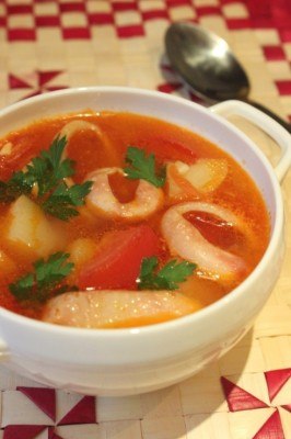 5. Очистить помидор от кожуры и порезать. Добавить в суп за 5 минут до готовности.