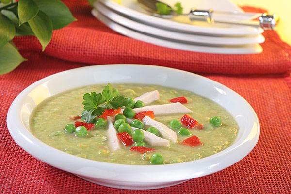 3. Перемолоть овощи в блендере, положить обратно в кастрюлю с бульоном, приправить оливковым маслом и специями по вкусу, перемешать.