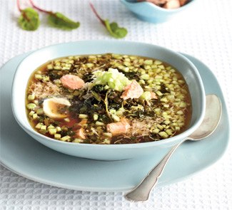 4. Консервированную рыбу разобрать на кусочки, удалить косточки, добавить в бульон.