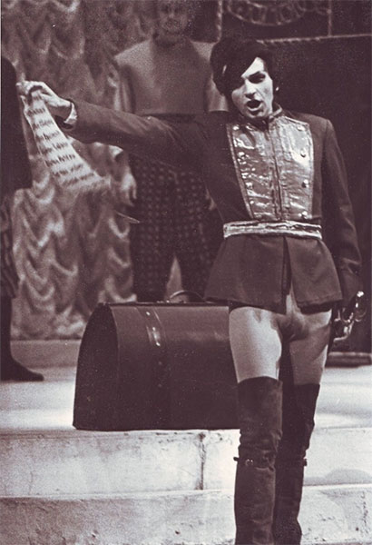 И вот 2 мая 1966 года я впервые спел партию Альфреда. Еще во время подготовки этой роли я, конечно, смотрел, как работают мои коллеги в этом спектакле. Мне нужно было видеть реальный рисунок сценического действия. В сцене «Бал у Флоры», куда в ярости прибегает Альфред с единственной задачей – унизить Виолетту, всем показать, что она продажная женщина, мне захотелось кое-что изменить в рисунке действия. Когда он при всех поет «…за любовь, за ласки при всех я ей плачу», то швыряет ей кошелек. Мне показалось, что из зала это смотрится не очень убедительно, даже будто робко. Я стал думать, как же можно эту сцену обыграть. Перед этой сценой Альфред очень удачно играет в карты, все время выигрывает и получает много денег. Я подумал, может быть кинуть эти деньги Виолетте к ногам, но без кошелька? Тоже не очень убедительно.