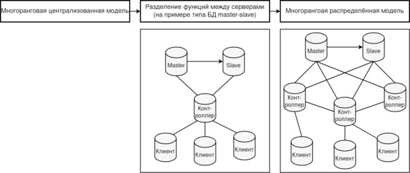 Рисунок 8. Развитие многоранговой архитектуры на примере типа БД «master-slave»