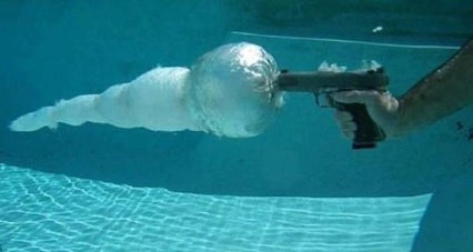 А теперь представим, что мы стреляем из пистолета не в воду, а из-под воды???