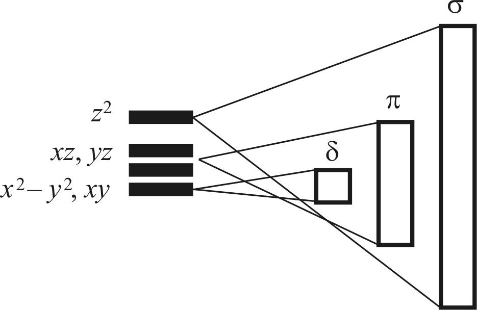 Рис. 26. Схема образования σ-, π-, δ-МО-зон [25]