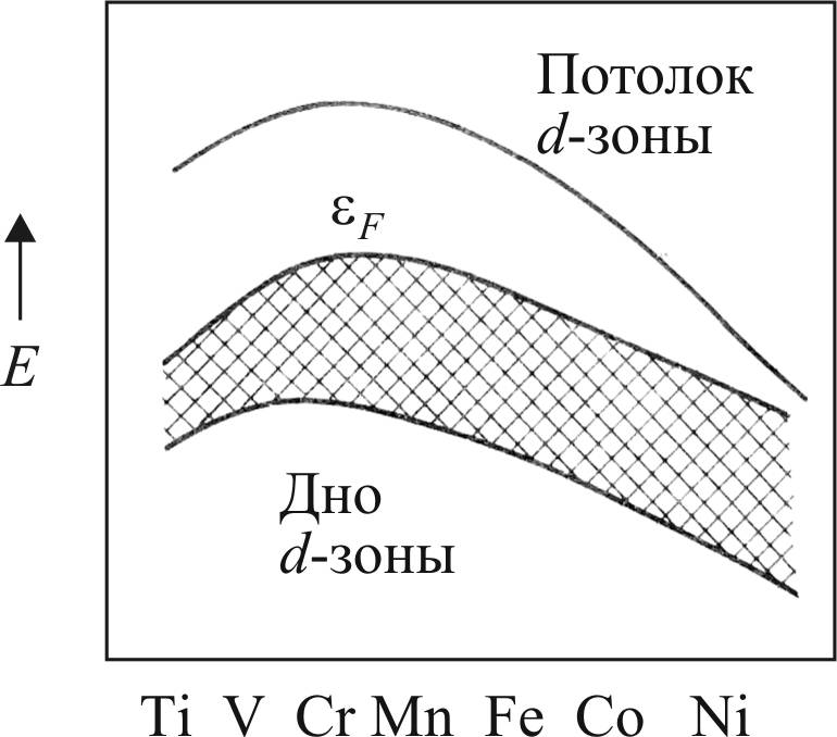 Квантово-механические расчеты положения уровня Ферми для металлов первой переходной серии (3d-металлы) проведены впервые О. Андерсеном (рис. 31).