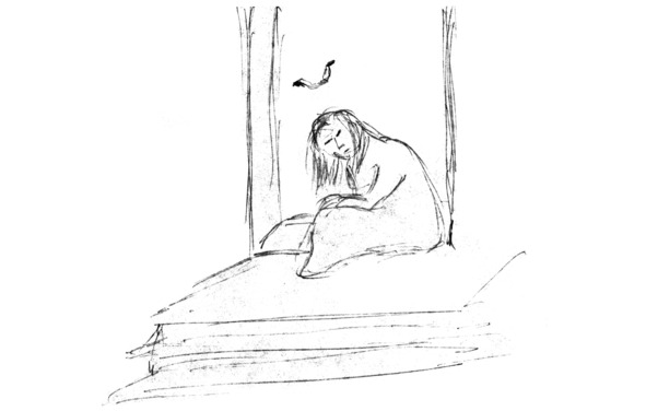 Как-то во время дежурства этой женщины мы с отцом для чего-то зашли в сторожку. Он лежал, отвернувшись к стене, густые вьющиеся тёмные волосы были короткими, а всё остальное у него было длинное – лицо, нос, пальцы, которыми Он водил по стене. А ещё у Него была синяя, вернее, бледно-голубая кожа, даже высунутая из-под одеяла длинная стопа была голубой. Я не мог отвести взгляда. И вдруг Он загукал, как малолетний ребёнок. Женщина тут же оказалась рядом с ним, и куда девалась противность из её голоса, куда девались резкие сердитые движения? Она кормила Его ложечкой из кружки, что-то выливалось у Него изо рта, она заботливо вытирала голубой подбородок и синие губы тряпкой. А Он бездумно водил глазами по ней, по нам, по потолку. Я невольно взял отца за руку…