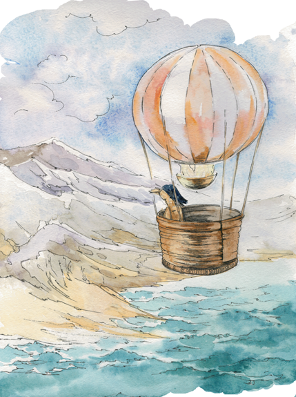 Шар поднимался всё выше и выше. Повинуясь ветру, дующему с океана, он летел прямо к горам.