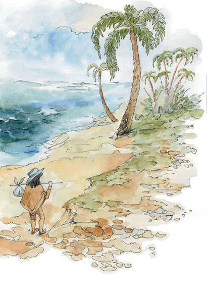 Он медленно брел вдоль берега океана, погрузившись в свои мысли. И вдруг он услышал чей-то плач. Маленький кактус остановился и внимательно прислушался. Плач раздавался из-за большой пальмы, растущей у кромки воды. Ни секунды не задумываясь, Сандро поспешил туда. Забежав за пальму, он увидел маленького муравья, который лежал на земле. Крупные, горькие слёзы капали из его глаз.