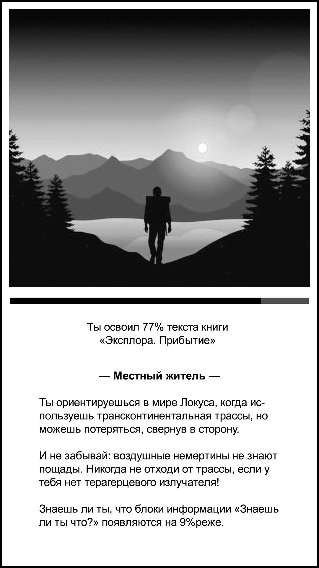 Ты освоил 77% текста книги «Эксплора. Прибытие».