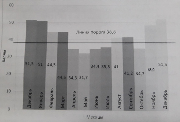 Итого: «зима» набирает – 147 баллов. «Осень» набирает – 123,9 балла. «Лето» набирает – 110,7. «Весна» набирает – 110,5 балла (не по месяцам, но «живые» сезоны).