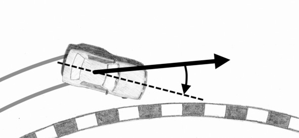 When the front axle slides, we lose control. Unlike understeer, drift – is a controlled sliding of car. There may be one or both axles in the slide. Tendency to drift and behavior of machine when drift are influenced by such parameters as the type of drive, steerability, the type of differential. During drift, the rear axle tends to bypass the front. For clearness, if longitudinal direction of the body deviates to the right from direction of movement, we will say that car drifts to the right (drift direction is to the right), and angle between direction of movement and longitudinal direction of the body will be called drift angle.