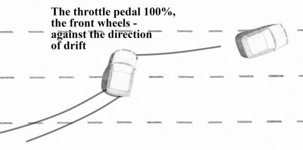 The psychology of an untrained driver forces him to release the throttle pedal when a drift occurs, regardless of the drive type. This is a common error in driving a front-wheel-drive car. Finding himself in an unfamiliar situation, overcame by sense of fear, the driver releases the gas pedal. So the drift increases. Eventually, driver loses control over the car, the car continues to move by inertia, as if there is no driver in it.
