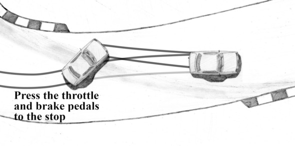 8. Together pressing the throttle and brake pedals on a front-wheel-drive car. Moving along the ring on a front-wheel-drive car, let us press the throttle and brake pedals at one time.