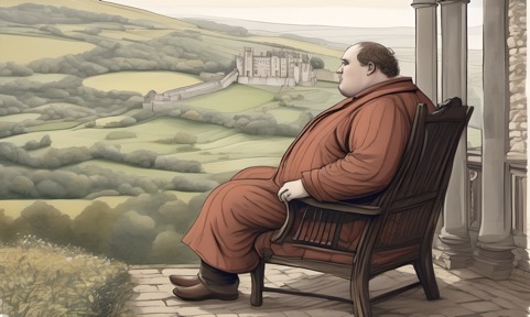 На веранде, под каменными сводчатыми вековыми арками сидел барон. Грузный человек в халате, средних лет, с черной щетиной на лице. Было 12 часов дня, он пил чай, любовался зелеными лугами и нежился под лучами солнца, которое было не частным гостем в этих краях. Резко небо сменило окрас и начался дождь. Стройная женщина вышла из замка и выкрикнула: