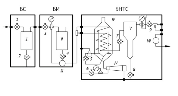 БС – блок первичной сепарации, БИ – блок ингибирования, БНТС – блок низкотемпературной сепарации