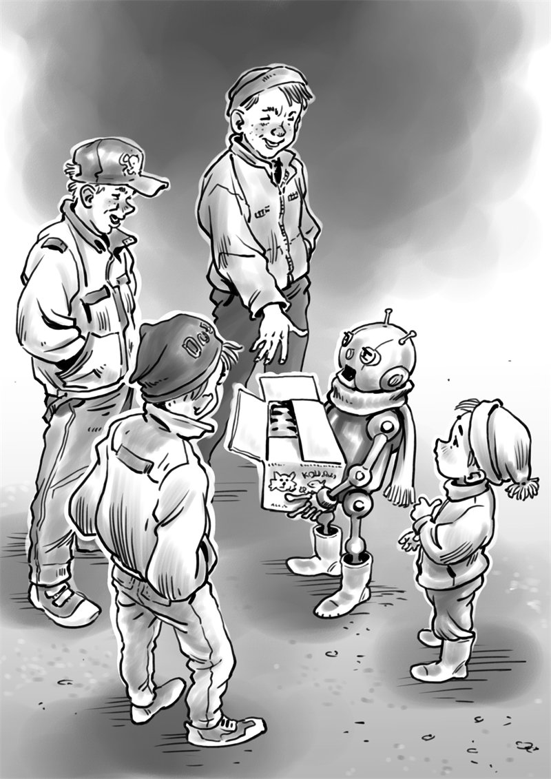 Грузчики снова переглянулись, кивнули. Тогда дед-грузчик, как самый опытный вручил роботу самую маленькую из коробок.