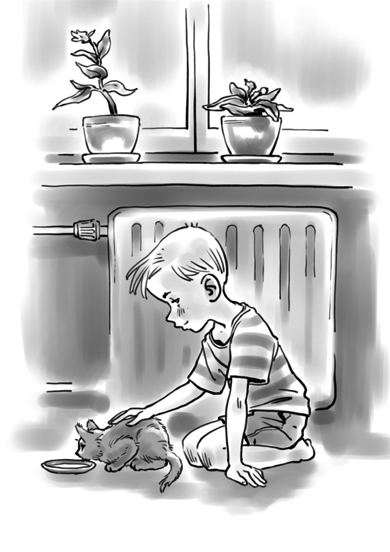 Но больше радовался Стёпка. Он сидел на кухне, прислонившись спиной к стене, и осторожно гладил котейку, посадив себе на ноги.