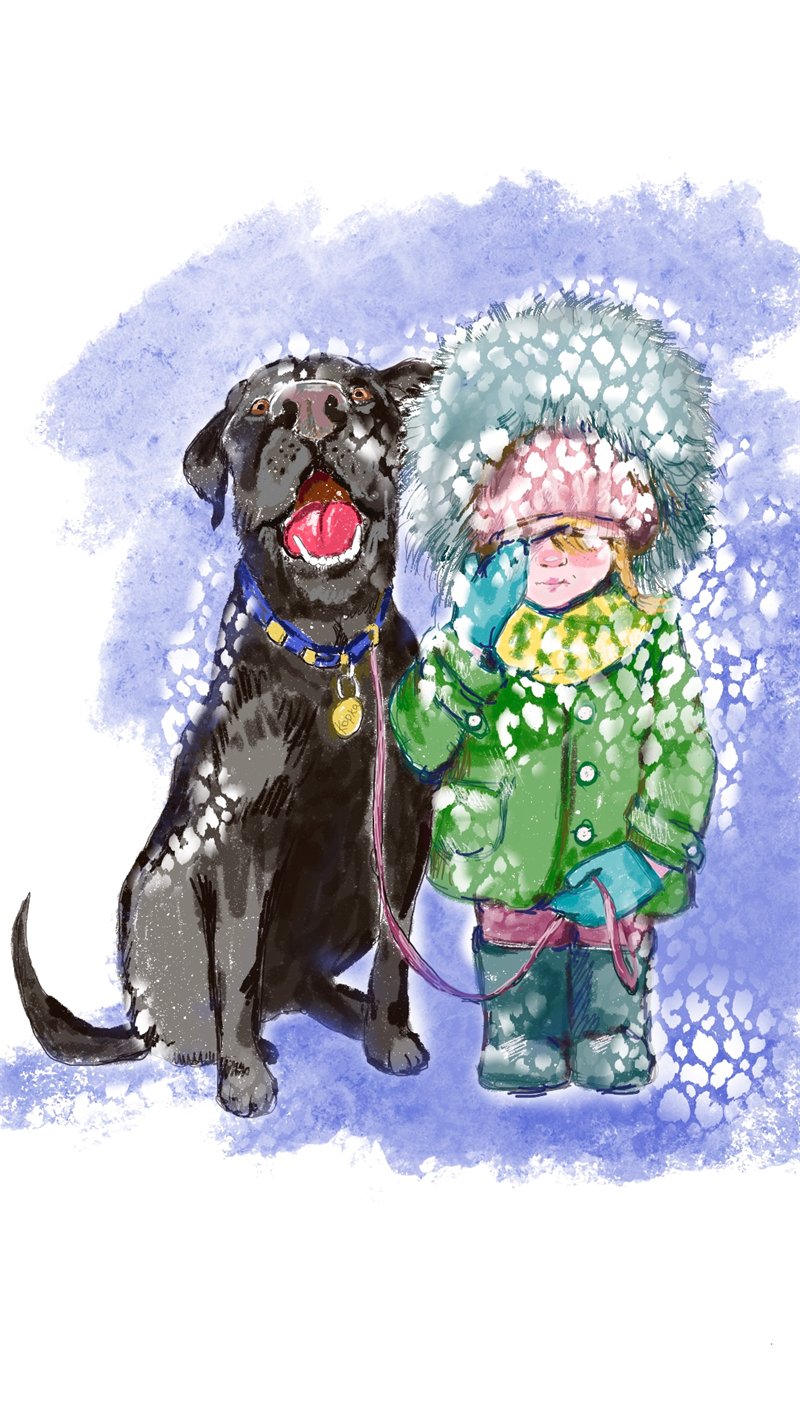 Стёпка следом за подругой с собакой вышел во двор. Открыв дверь подъезда, он на мгновение замер. Белоснежное великолепие ослепило. Снег был повсюду: на деревьях, на лестнице, на прохожих. Он очень быстро повис на ресницах, укусил за щёки, и улыбка с ямочкой на мальчике появилась сама по себе.