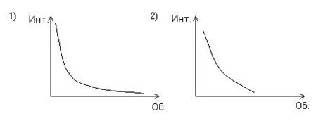 Здесь «Об.» – объем, т.е. количество образов, на которые распространяется приоритет изначального образа; «Инт.» – сила приоритета (интенсивность) относительно исходного. Как видите, в первом случае объем распространения большой, но высокая убываемость, во втором случае – наоборот; потому и различные свойства. Кстати, ранее я говорил, что разброс мышления (взаимодействия образов) может быть очень большим (а равно и наоборот), и была названа одна из причин: относительно высокая средняя пересекаемость образов. Вот вам вторая причина: если объём и интенсивность распространяемости (да и по отдельности тоже) высоки, т.е. если на рисунке 8.1 провести ровную линию между крайними точками, то образы будут получать относительно много приоритета и, как следствие, мыслительные цепочки от них будут достаточно сильными; забивающими предыдущие (отсюда и «перескоки»). Если у человека разброс мышления небольшой (линия, приближенная к вертикальной), значит наоборот, ибо основная цепочка (цепочка с наибольшим средним приоритетом) даёт слишком мало «пищи» побочным; человек может долго думать об одном и том же, не теряя мысли.
