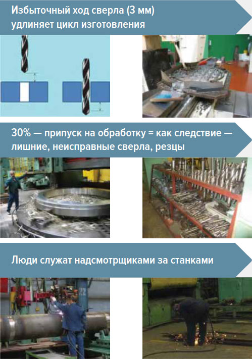 – лишние этапы обработки (технологию пишут люди, у которых нет мотивации на бережливость или есть избыточный консерватизм из-за «страха безопасности»);