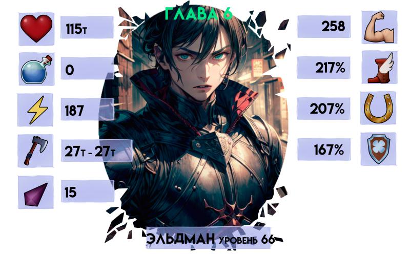 – Тридцать два, – бегло пересчитал горсти эссенции Эльдман. – Наш противник легендарный. Полмиллиона очков здоровья, урон от обычной атаки восемь тысяч, от способностей до сорока. Оружия у него нет, броня тканевая, а значит его показатель скорости плюс-минус двести семьдесят процентов. Учитывая, что он справился с нашим боссом в одиночку, смею предположить, что он владеет сильной способностью к контролю. Если под контроль попаду я, и он переключится на тебя или Сильвину, скорее всего, этот чердак станет нашей новой могилой. – Несколько секунд Эльдман составлял тактики и рассчитывал их успех. – Мы победим с вероятностью восемь процентов.
