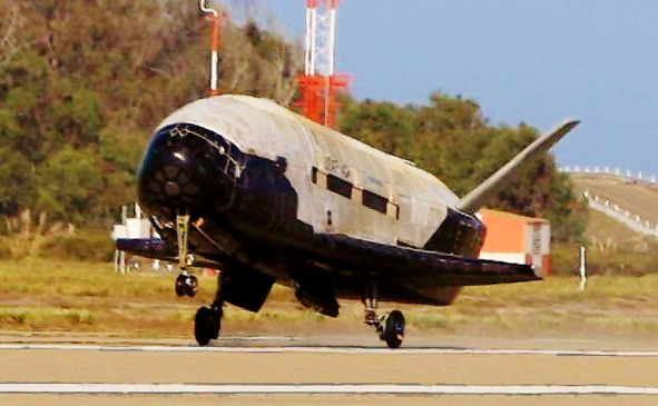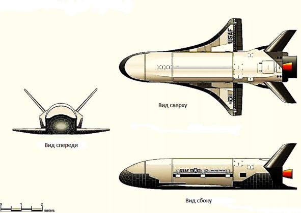 Х-37В – крылатый аппарат со стартовой массой около 5000 кг, имеющий крыло двойной стреловидности, V-образное оперение и трехопорное посадочное шасси. Длина космоплана – 8.92 м, размах крыла – 4.55 м, высота – 2.90 м. В хвостовой части размещен маршевый жидкостный ракетный двигатель AR2—3 фирмы Rocketdyne с тягой около 3 тс, имеются двигатели реактивной системы управления. В орбитальном полете аппарат запитывается от развертываемой солнечной батареи и литий-ионных аккумуляторов. Грузовой отсек с двухстворчатым люком имеет длину 2.1 м при диаметре 1.2 м. Максимальная масса полезного груза, размещаемого в нем, оценивается в 500 кг. Первый испытательный орбитальный пуск состоялся 22 апреля 2010 г. на ракете Atlas V.