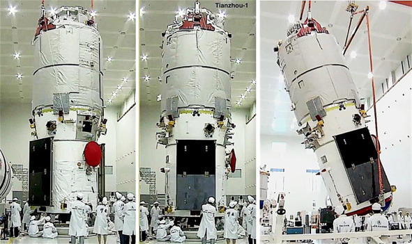 Спроектированы три варианта «Тяньчжоу» с разной конфигурацией отсека доставляемых грузов. Помимо испытываемой в первом полете герметичной версии, для снабжения китайской космической станции «Тяньгун» будут использоваться вариант с полностью негерметичным отсеком для доставки внешних грузов и комбинированная версия, в которой передняя половина цилиндра большого диаметра выполнена как герметичная секция, а задняя – как негерметичный объем. Доставляемые в открытых секциях негерметичные грузы планируется извлекать с использованием манипулятора станции.