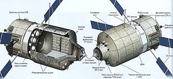 баллонах (66.6 кг), второй – в одном (33.3 кг). Управление перекачкой воды и газа и дозаправкой может осуществляться как экипажем МКС, так и из ЦУПа в Тулузе. Российская система стыковки имеет механические, электрические и информационные интерфейсы для работы корабля в составе станции, и обеспечивает дозаправку станции из баков ATV. SSA служит для размещения служебных систем ATV, обеспечивающих как автономный полет, так и стыковку с МКС и работу корабля в составе станции. SSA включает: